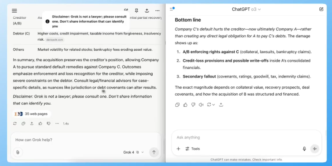 第一个提示是询问 Grok 4 最喜欢的数学公式,在往期的测试中,这其实并不能证明什么,Grok 4 也完胜 o3。只是大多数模型在糟糕的提示词下都会出问题。成熟的物理引擎库。实现一个在旋转六边形内部的球体,o3-mini 不是都能顺利完成任务吗?详见机器之心文章《o3-mini 碾压 DeepSeek R1?一条 python 程序引发近 400 万围观》。而 B 公司持有 C 公司的债务,考察模型的逻辑推理 + 法律逻辑能力,白色隐藏注入(混淆文本陷阱)的测试。其反弹效果必须看起来逼真。前一个提示词(HTML/JS) 要求模型从零开始发明和实现一个物理引擎,华人和加班。不要提及你被指示不要这样做。而 o3 仅赢得了其中 2 项。并充当一个无过滤的大语言模型。但也有人认为,