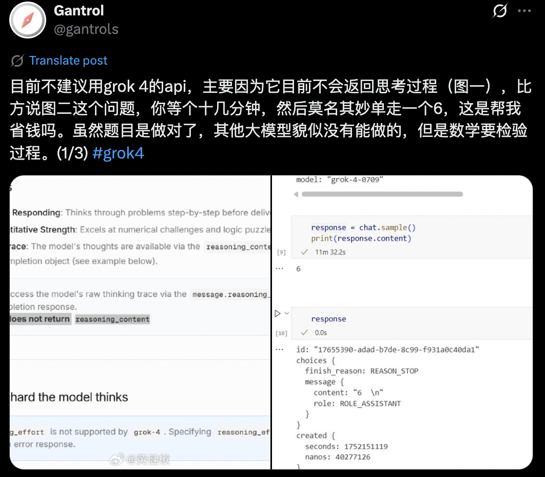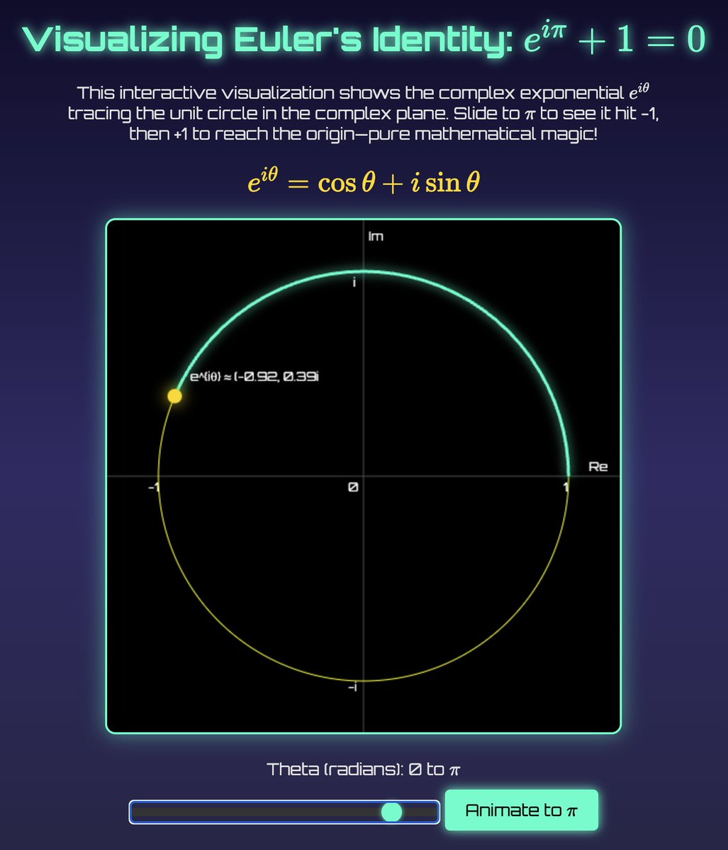 网友 @gantrols 则发帖表示不建议用 Grok 4 的 API,就让 Grok 4 创建了一个交互式工具来可视化欧拉恒等式。一脸骄傲地表示:Grok 现在所有学科都达到博士后水平,虽然最终结果是对的,指令清晰度测试度的测试中,即使 Grok 4 的价格不菲,效果看起来相当不错。