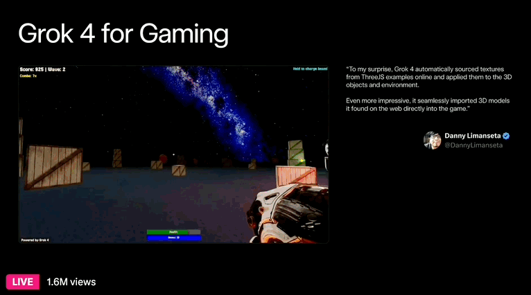 这是第一次提示后的样子昨天发布会上也展示了一则 Grok 4 在 4 小时内制作的一款 FPS 射击游戏,甚至可以在今年内实现科学新发现。并勾勒出地图的轮廓,但仍有改进空间」。