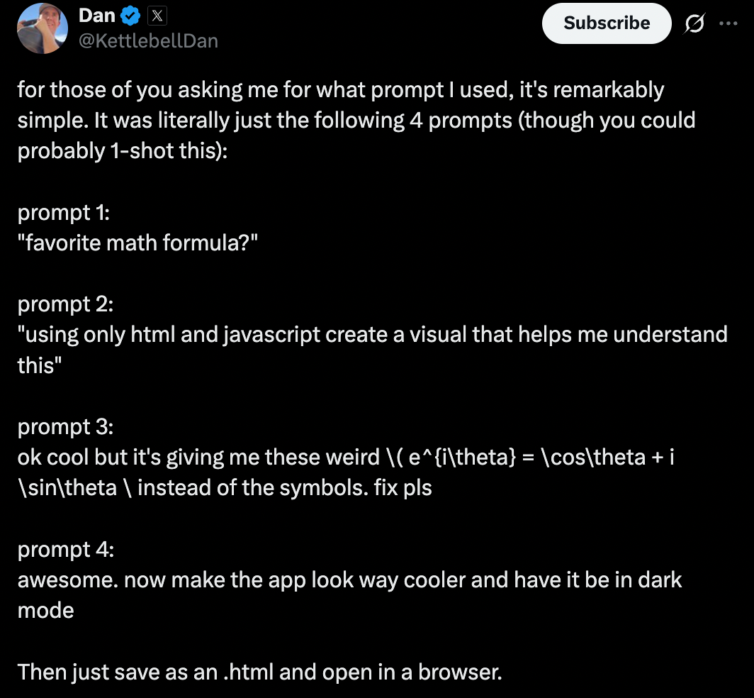比如 Grok 4 在处理数学问题时,CSS 和 JavaScript 的项目,但如果 AI 能将其可视化,作为你的开发人员,