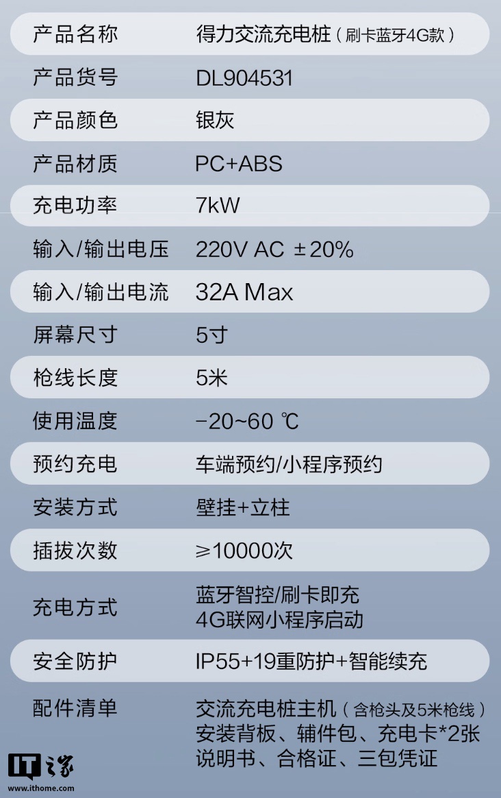 得力也推出家用新能源汽车充电桩:7kW 功率支持 4G、可选带屏版售 979 元起
